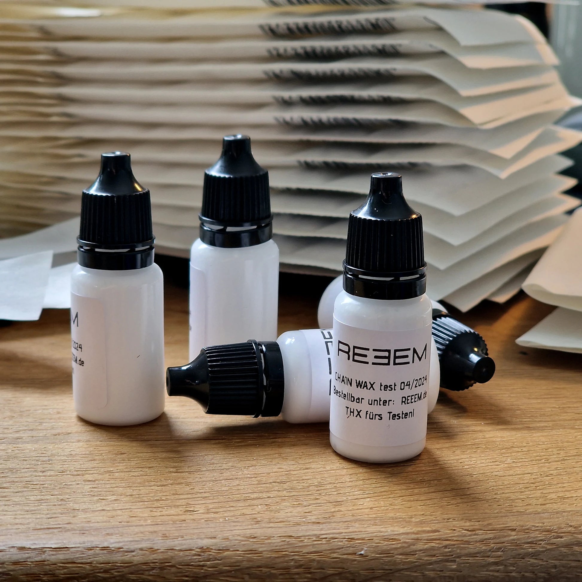 Die neue Charge von unserem Kettenwachs ist mit neuem Mischverhältnis und etwas weniger Feststoffgehalt flexibler und härtet nicht vollkommen aus. So haben wir die Langzeithaltbarkeit verbessert und die Schmierwirkung beibehalten.